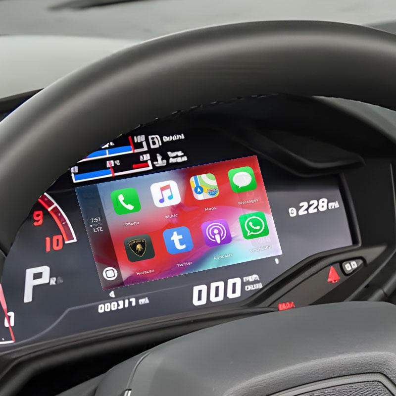 Se guidi una Lamborghini d'epoca, scegli il nostro adattatore wireless CarPlay intelligente, che ti consente di connetterti istantaneamente a mappe, streaming di musica e podcast, messaggistica e altro ancora tramite il touchscreen. Compatibile con Apple CarPlay e Android Auto, per Lamborghini Huracan. Lo schermo da 6,5 pollici rende la visualizzazione più intuitiva.