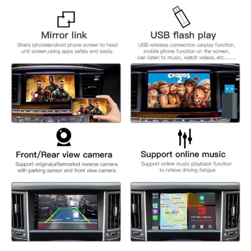 Questo Carplay wireless è compatibile al 100% con Infiniti e supporta la telecamera posteriore originale di fabbrica e il radar di parcheggio.